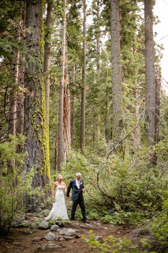 Rosemary and Bill’s heartfelt Tahoe wedding was a stunning blend of rustic charm and timeless elegance, set against the breathtaking backdrop of the Sierra Nevada mountains. The couple exchanged vows in the historic Mountain Metro Church, a charming wooden A-frame chapel nestled among towering evergreens. Lush ferns and delicate white florals adorned the warm wooden benches, creating an intimate atmosphere.