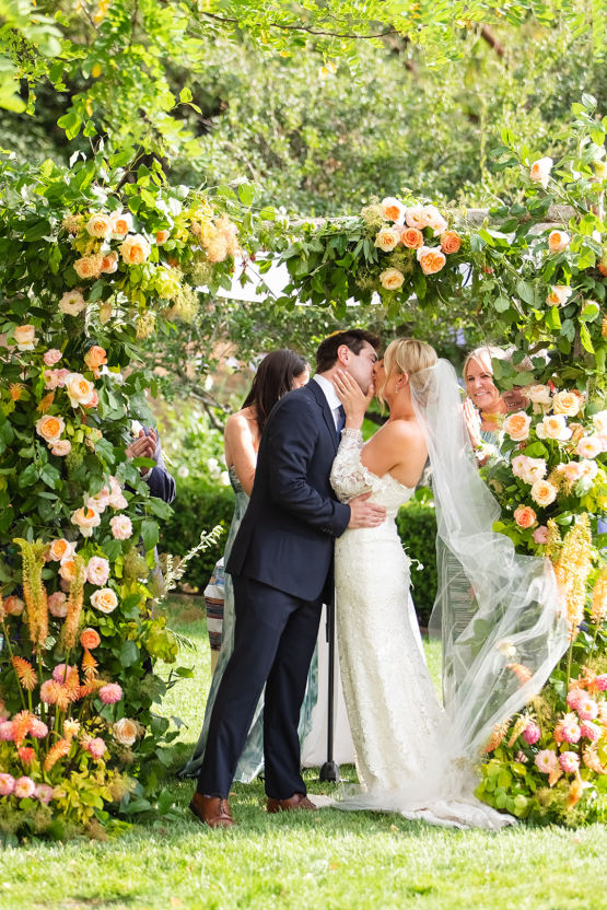 What an incredible chuppah! Overflowing with colorful peachy florals, Arielle and Matt’s traditional Jewish wedding featured a ceremony chuppah that will inspire couples for years to come.